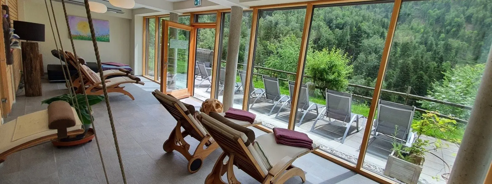 Ob Sie im Bergkristallraum neue Energie tanken oder im Ruheraum und auf der Terrasse in einer der bequemen Pendelliegen den großartigen Ausblick in die Natur genießen – es ist immer die Stille und die bewusste Nicht-Aktivität, die uns wieder in Einklang mit uns selber bringt.